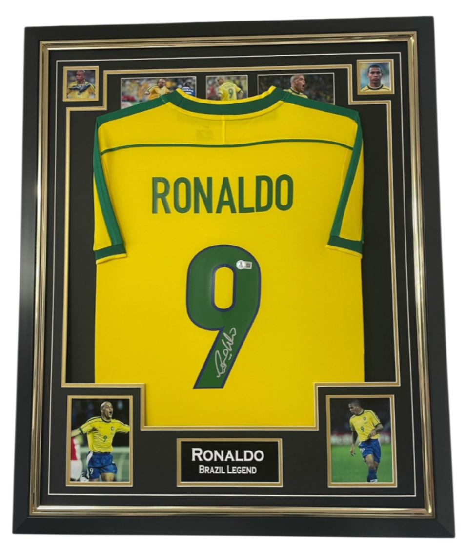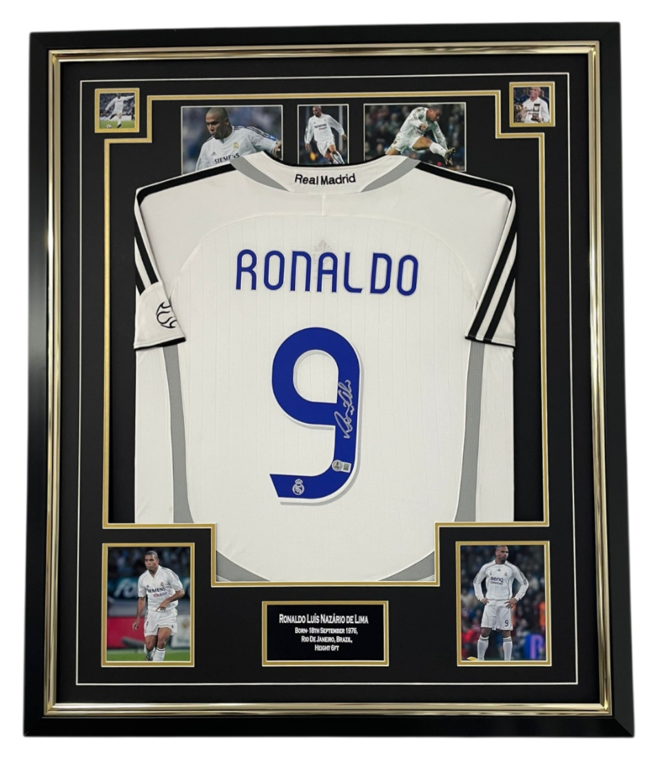 Framed and autographed Ronaldo Brazil and Madrid Signed Jersey
