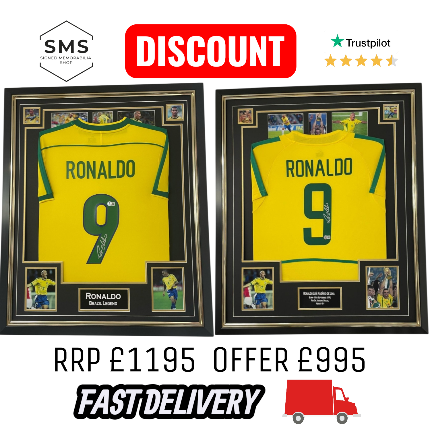 Framed and autographed Ronaldo Brazil Signed Jersey x 2