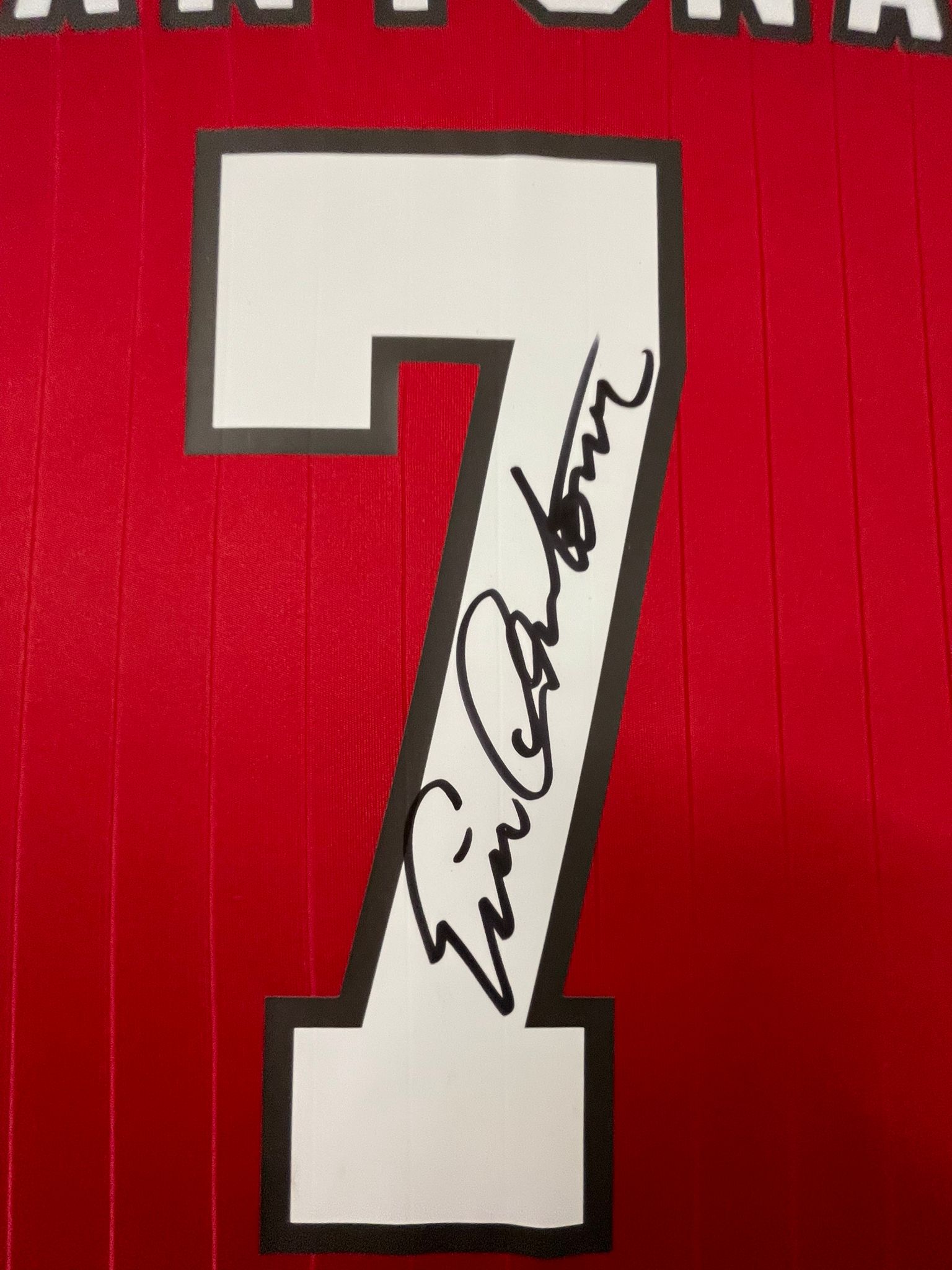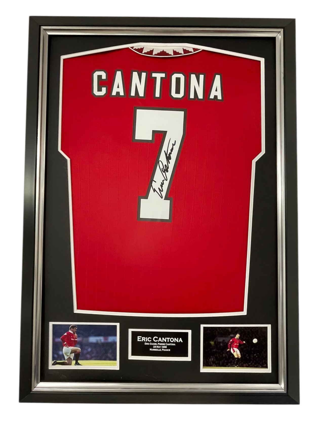 Autographed and framed ERIC CANTONA of Manchester Signed Jersey.