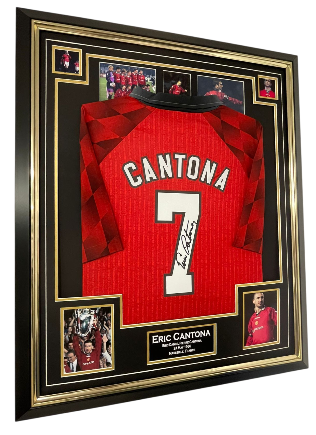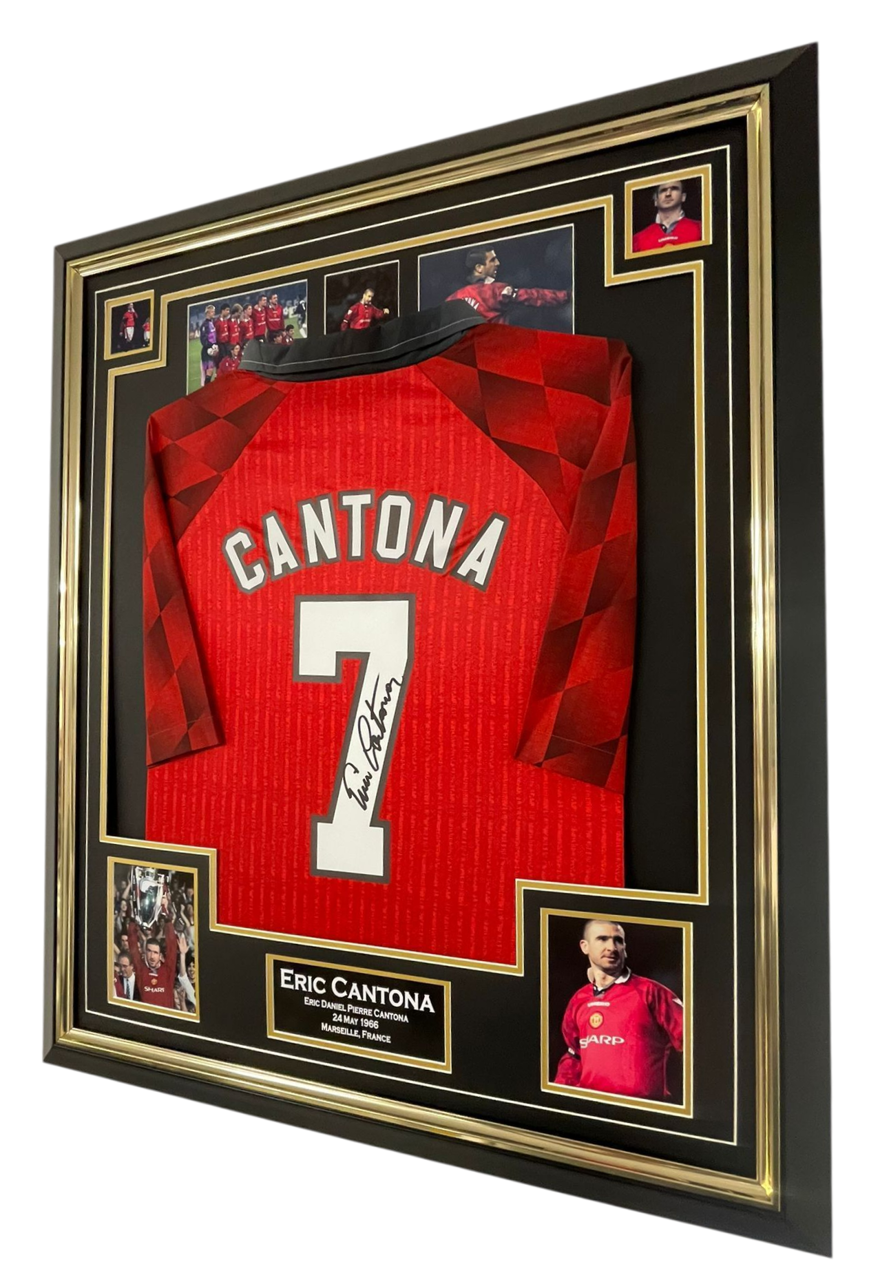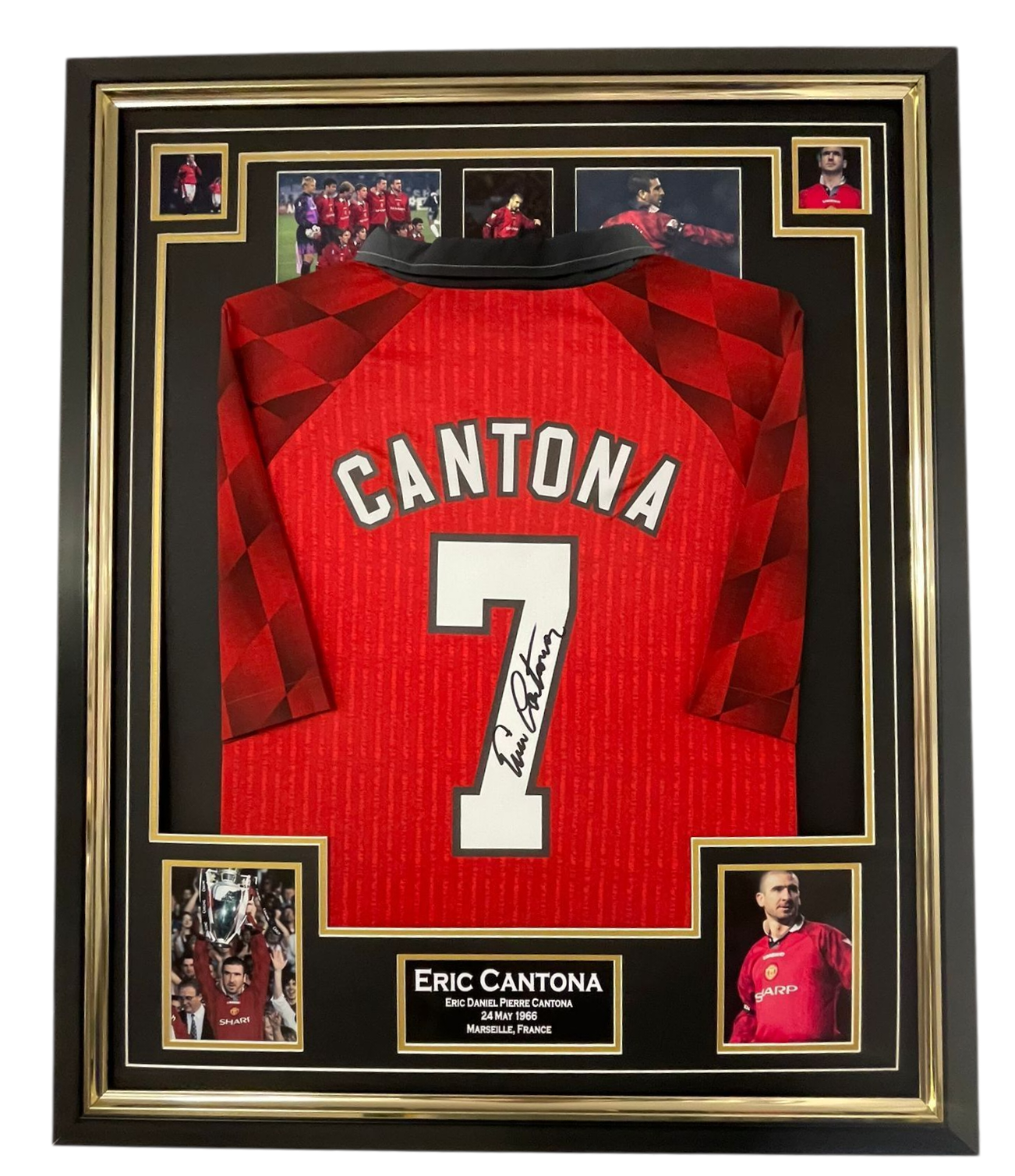 Autographed and framed ERIC CANTONA of Manchester Signed Jersey.