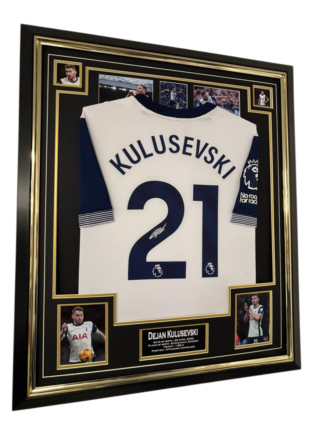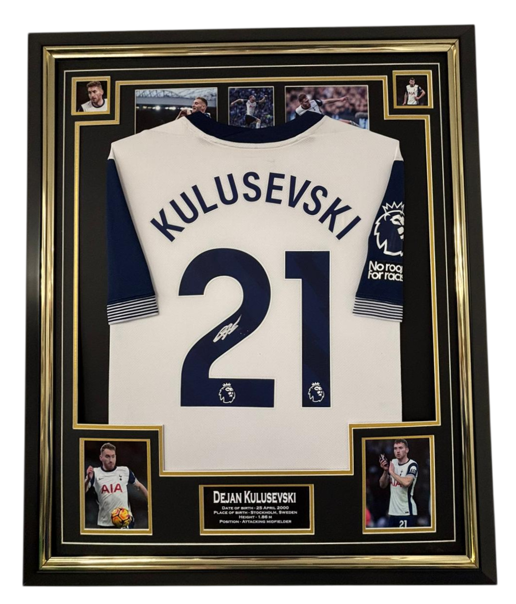 Framed DEJAN KULUSEVSKI Of Tottenham Signed Jersey.