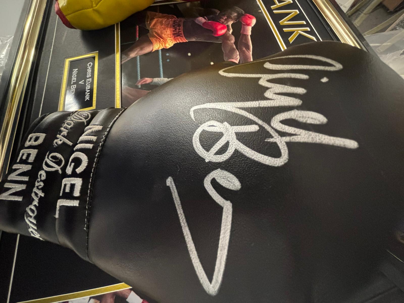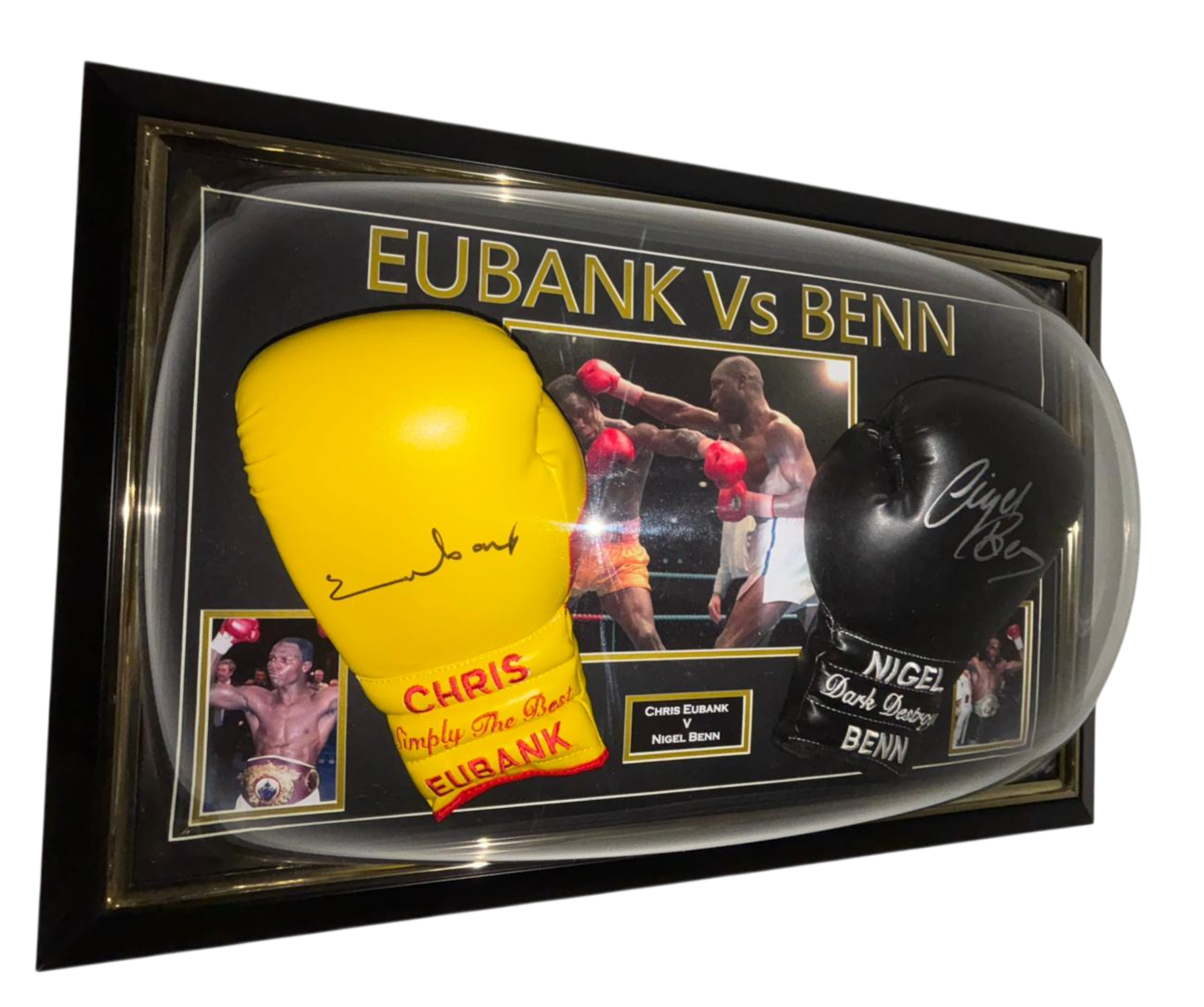 Framed and Signed Nigel Benn and Chris Eubank AUTOGRAPHED GLOVE