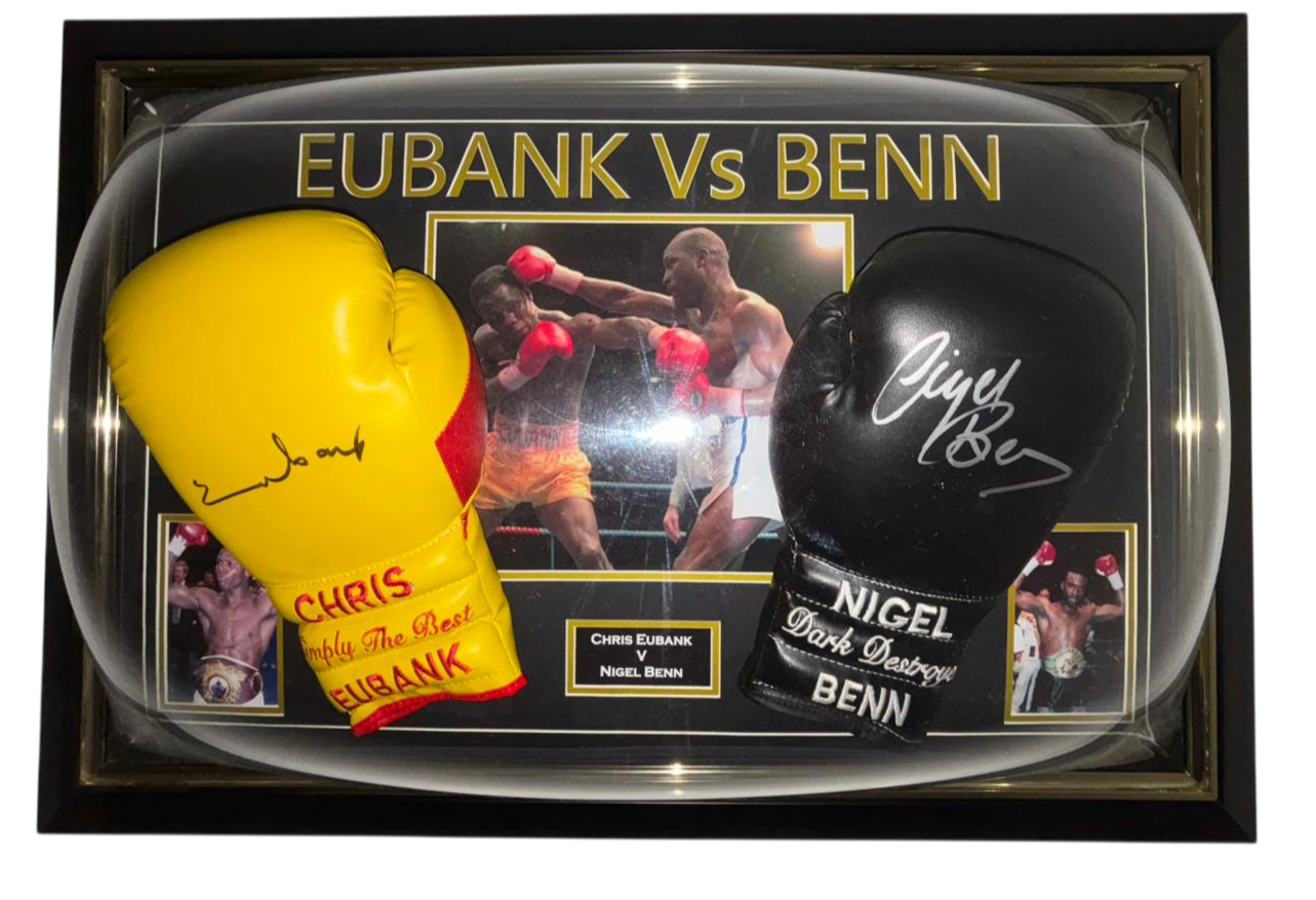 Framed Nigel Benn and Chris Eubank Signed Boxing Gloves