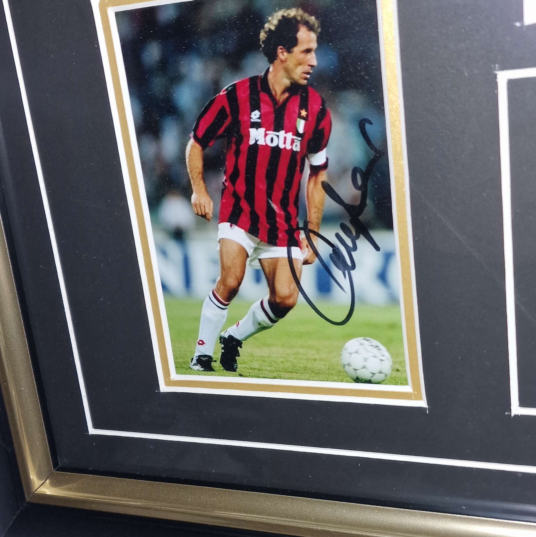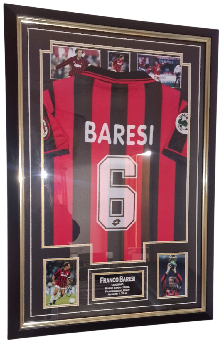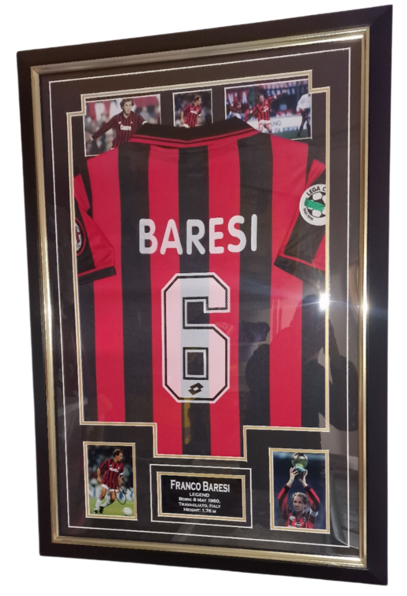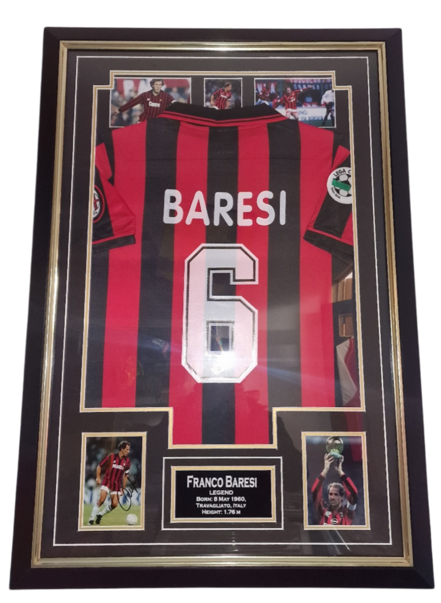 Autographed and Framed Franco Baresi SIGNED Jersey and Certificate of Authenticity.
