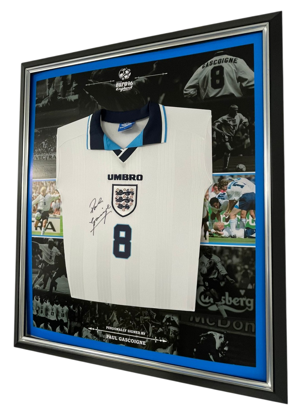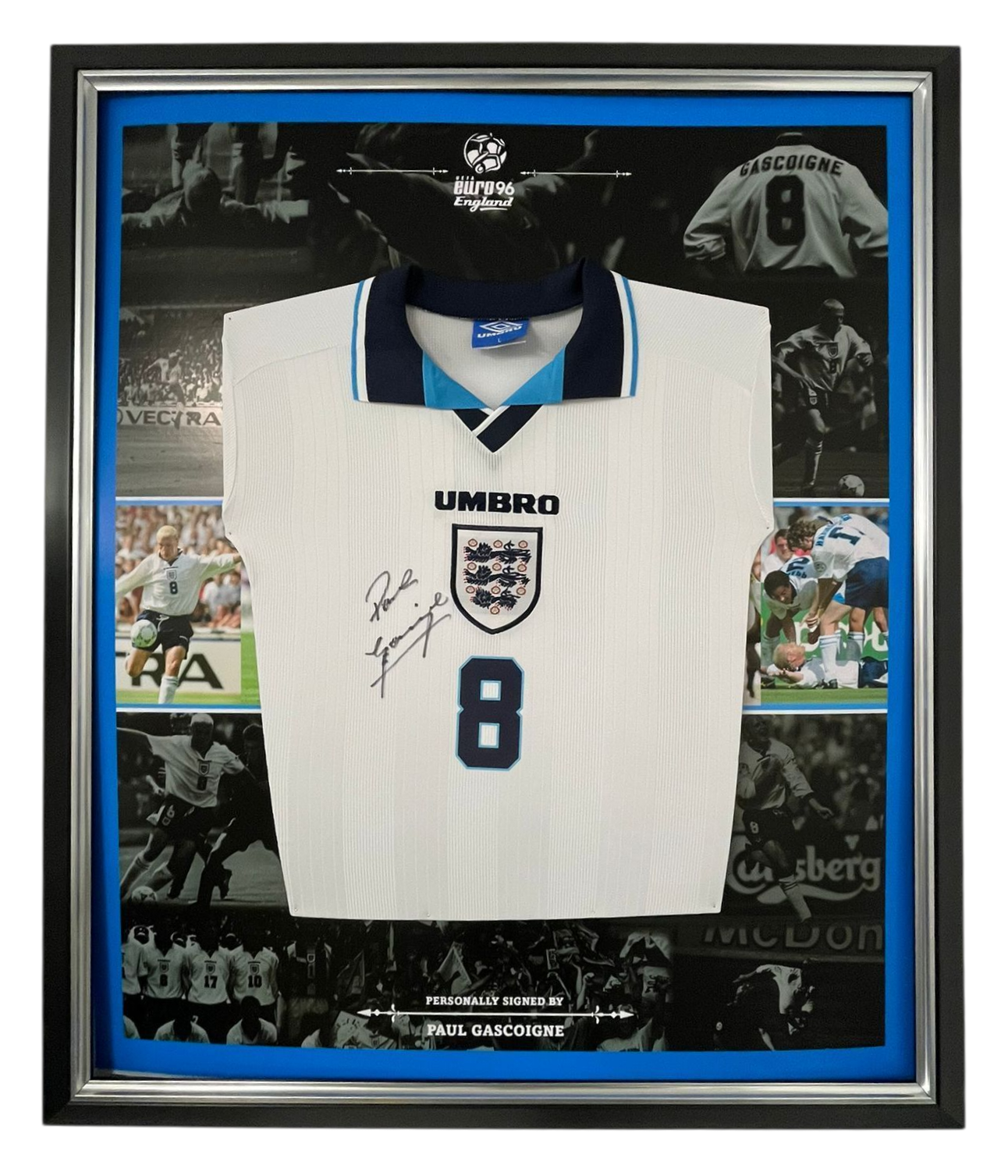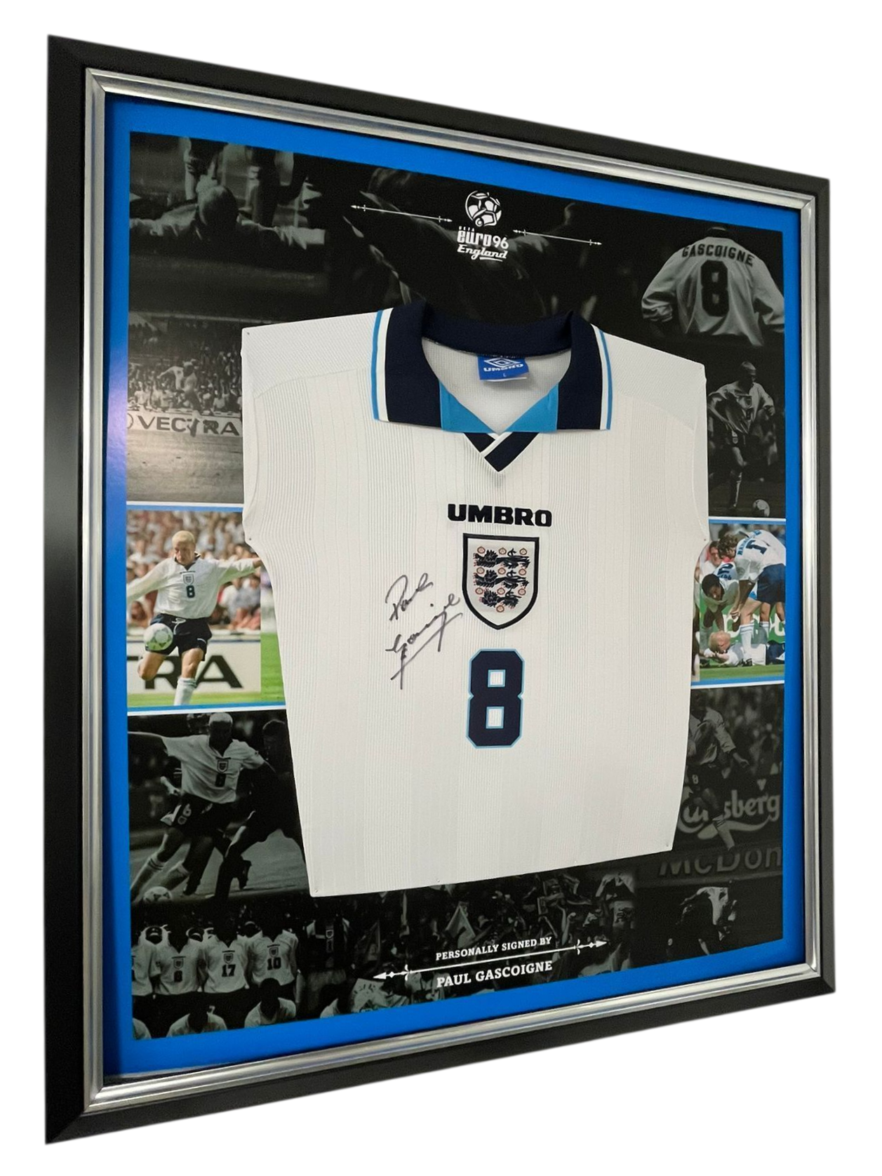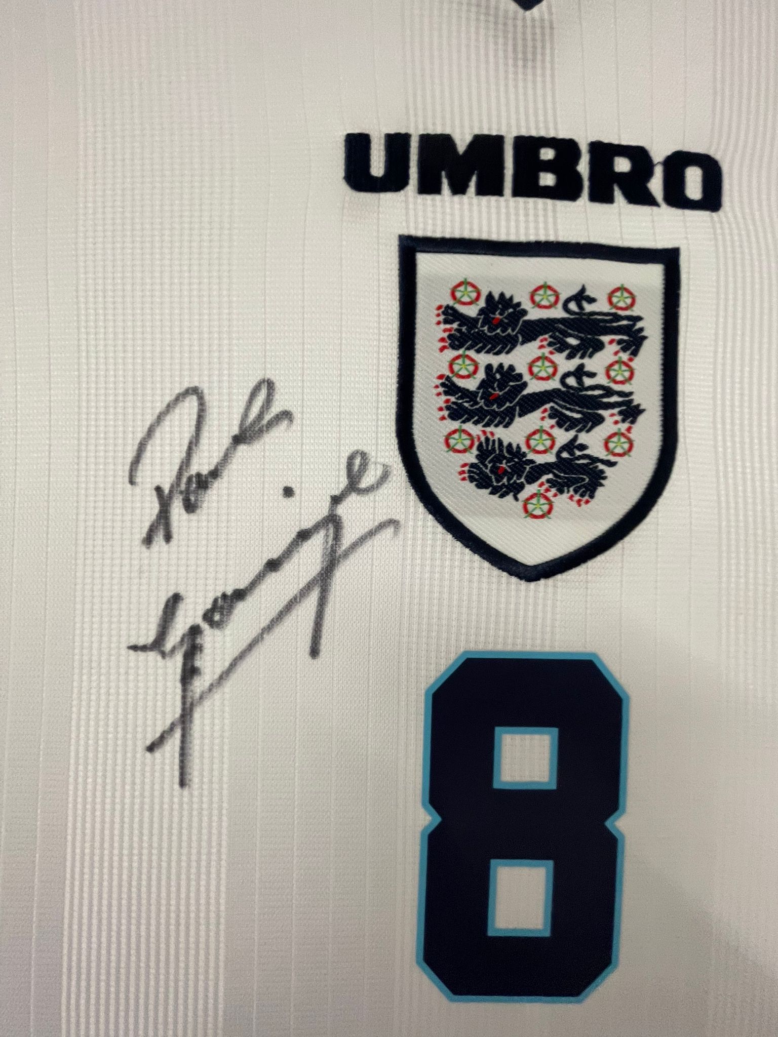 Framed and Autographed Paul Gazza Gascoigne Signed Jersey.