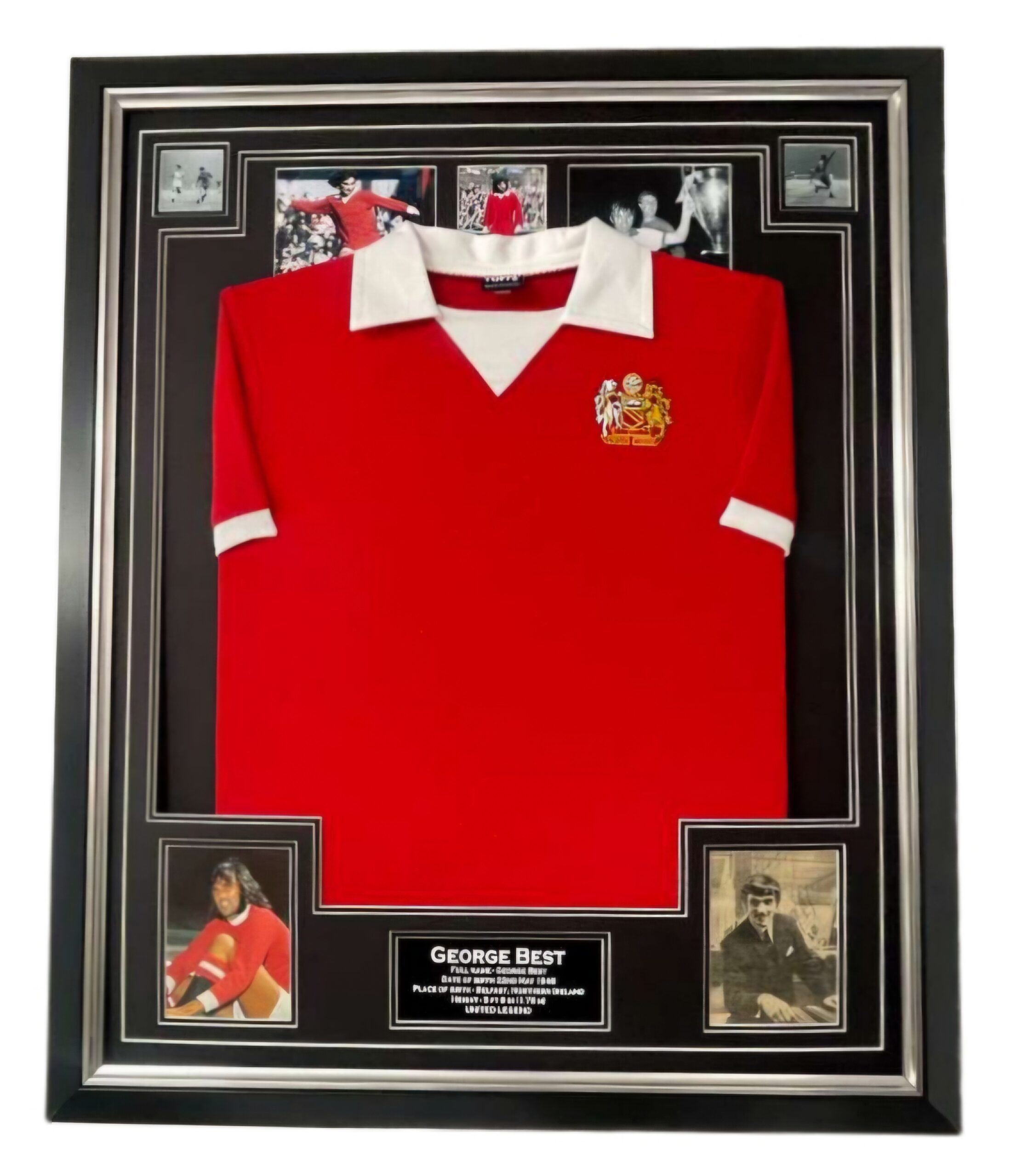 GEORGE BEST AUTOGRAPHED DISPLAY and MANCHESTER UNITED JERSEY