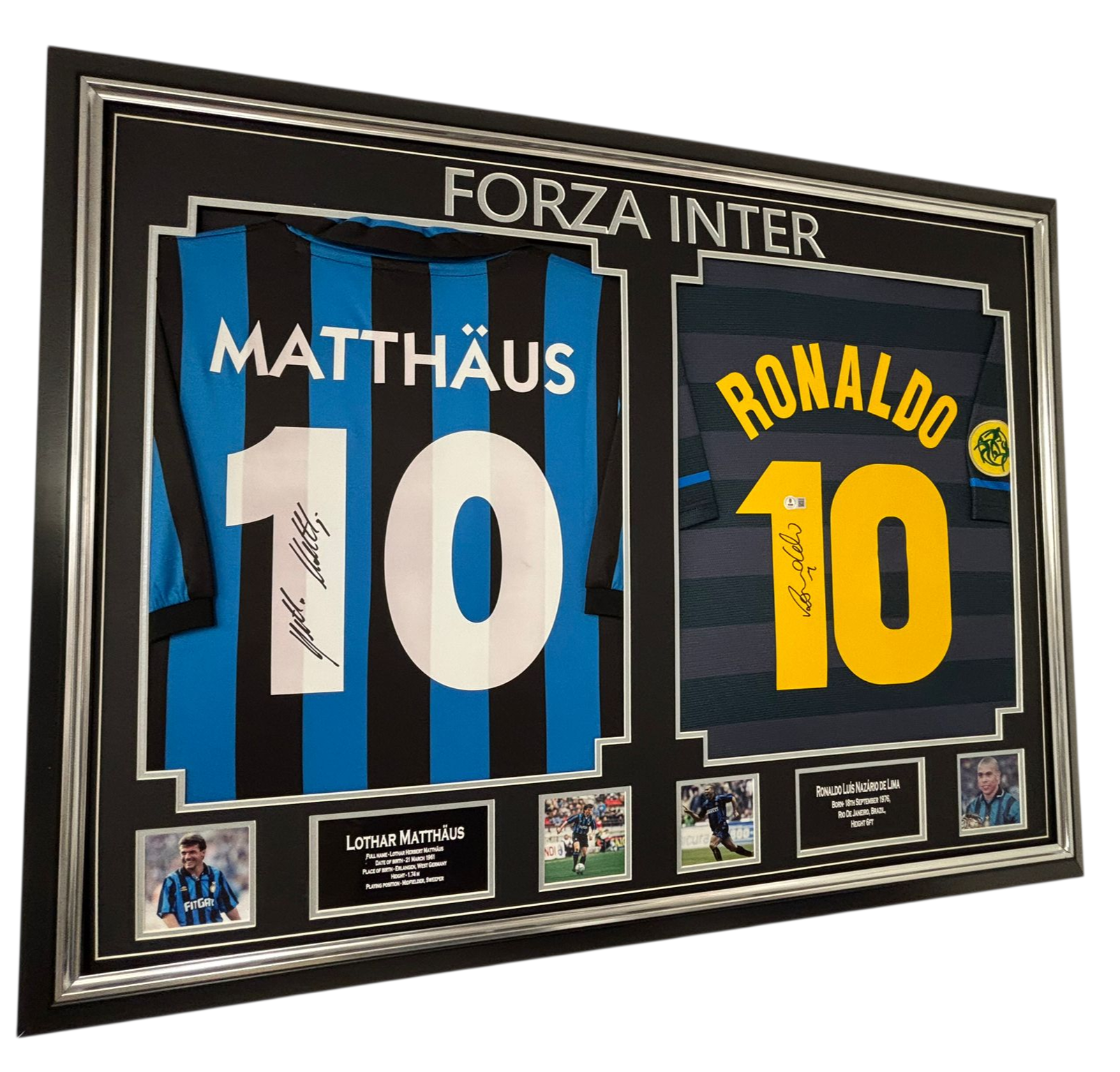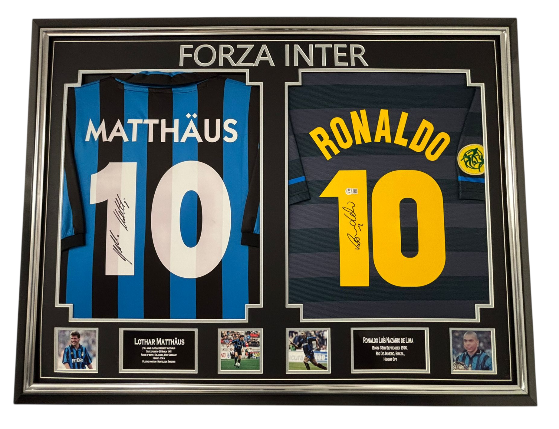 Framed and Autographed Lothar Matthaus AND Ronaldo Signed Shirts (Inter).