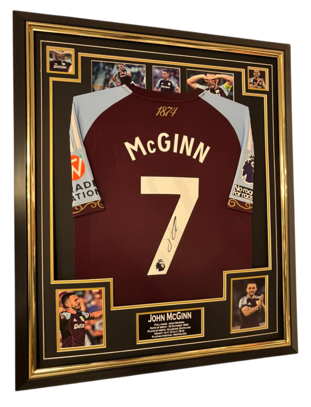 Framed and Autographed John McGinn of Aston Signed Jersey