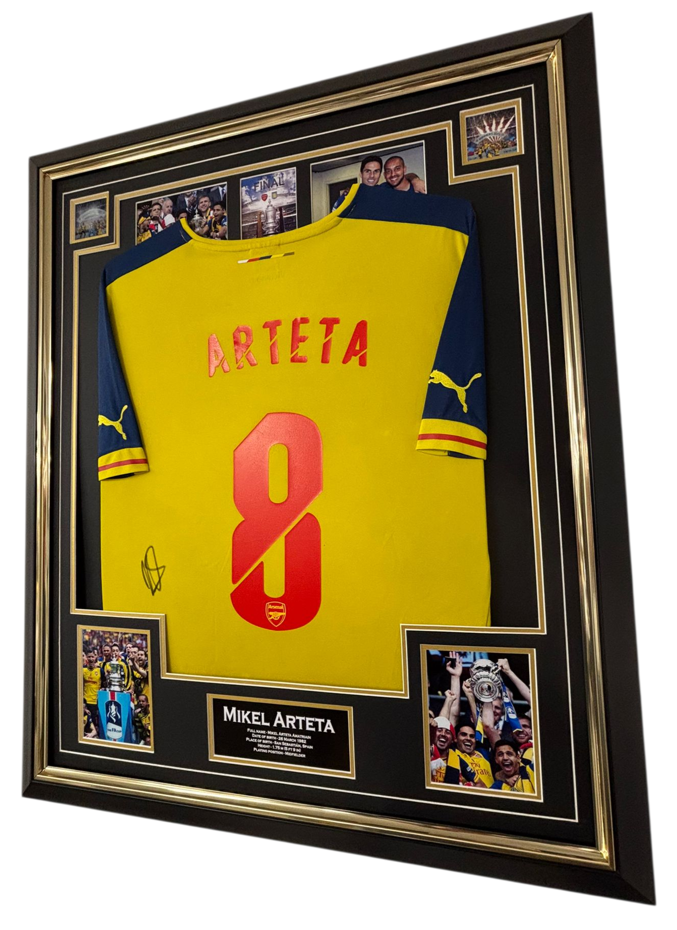 Autographed Framed and Autographed Mikel Arteta Signed Jersey.