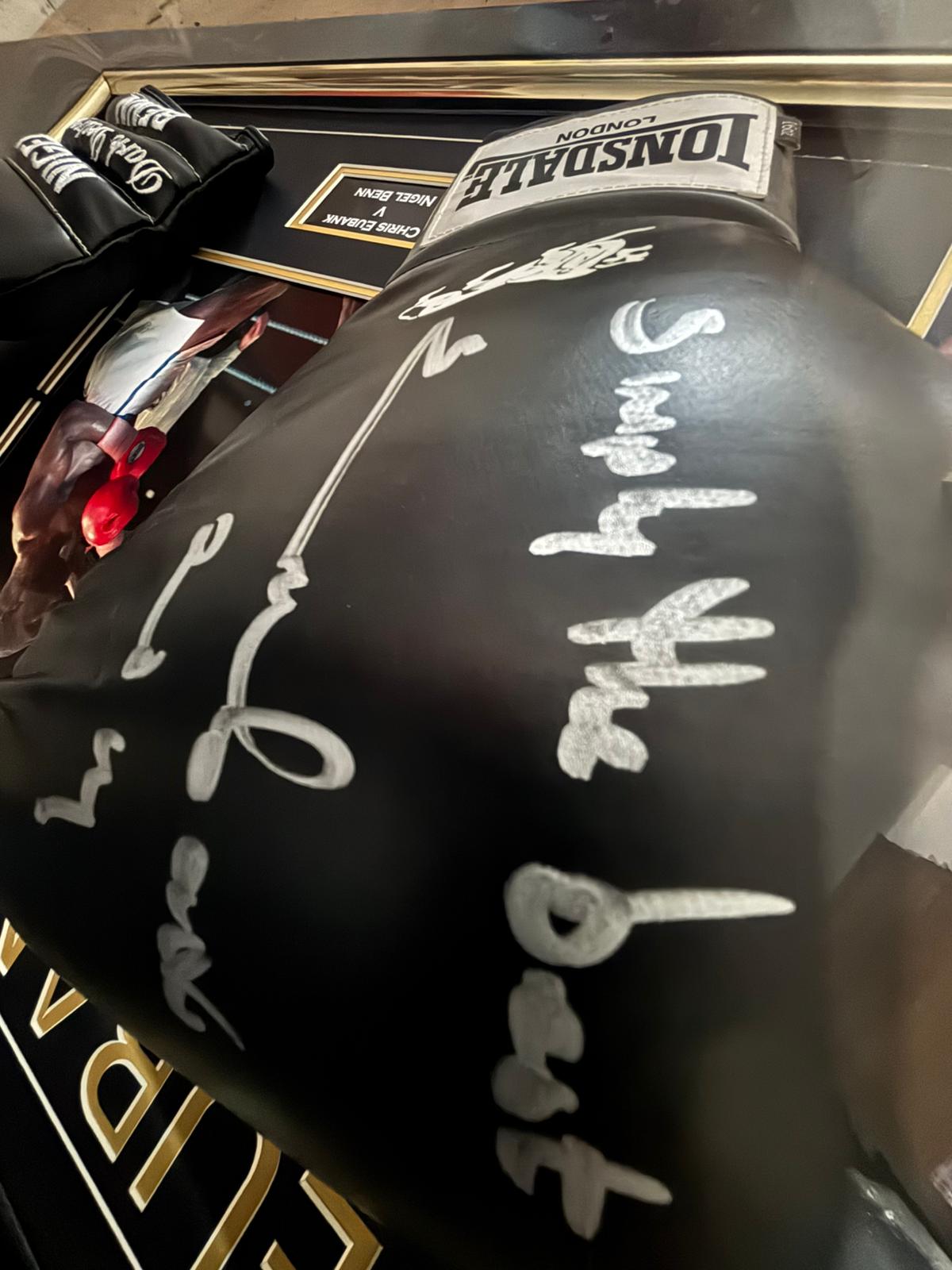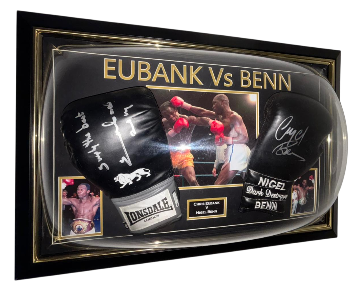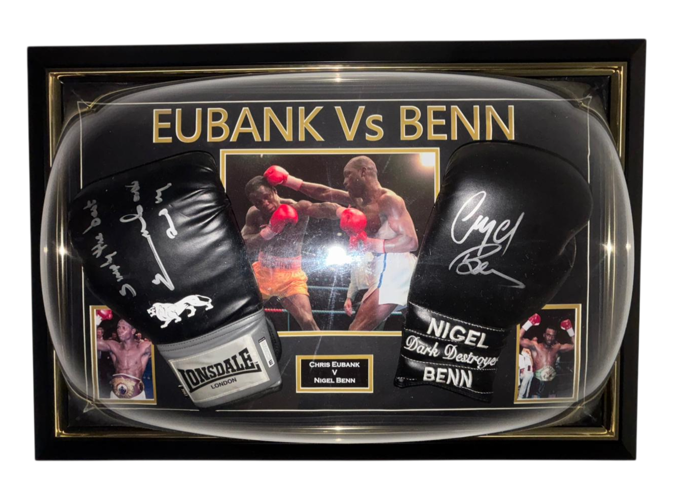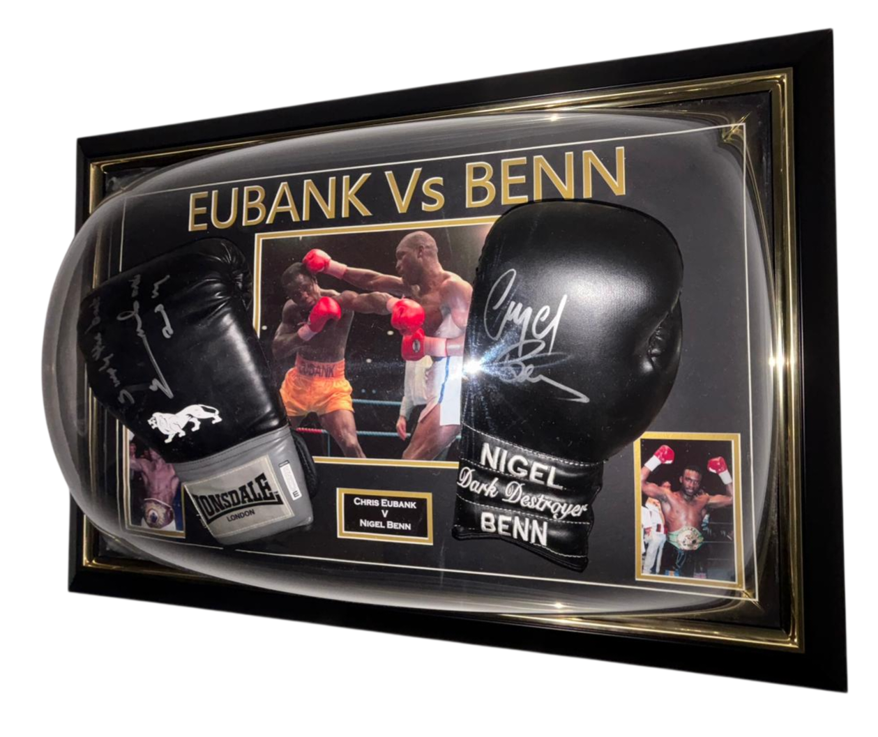 Framed and Signed Nigel Benn and Chris Eubank AUTOGRAPHED GLOVE