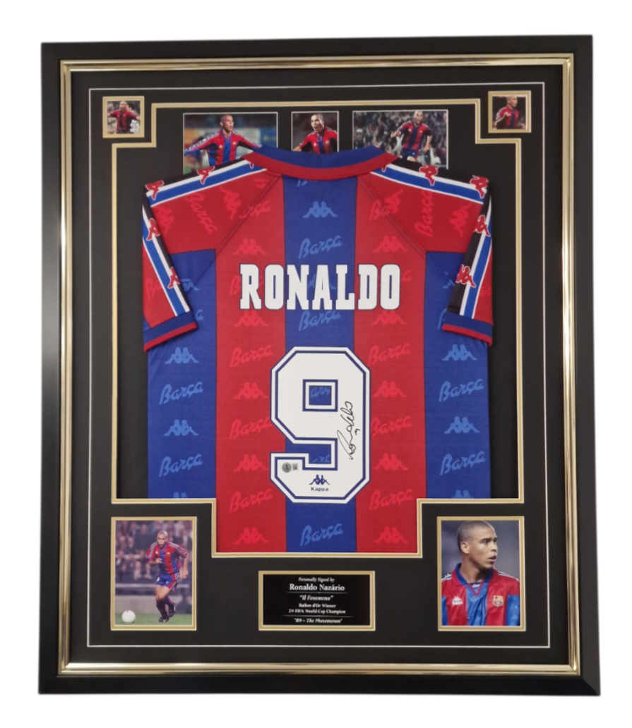 Autographed and Framed Ronaldinho and Ronaldo of Brazil Signed Shirts.