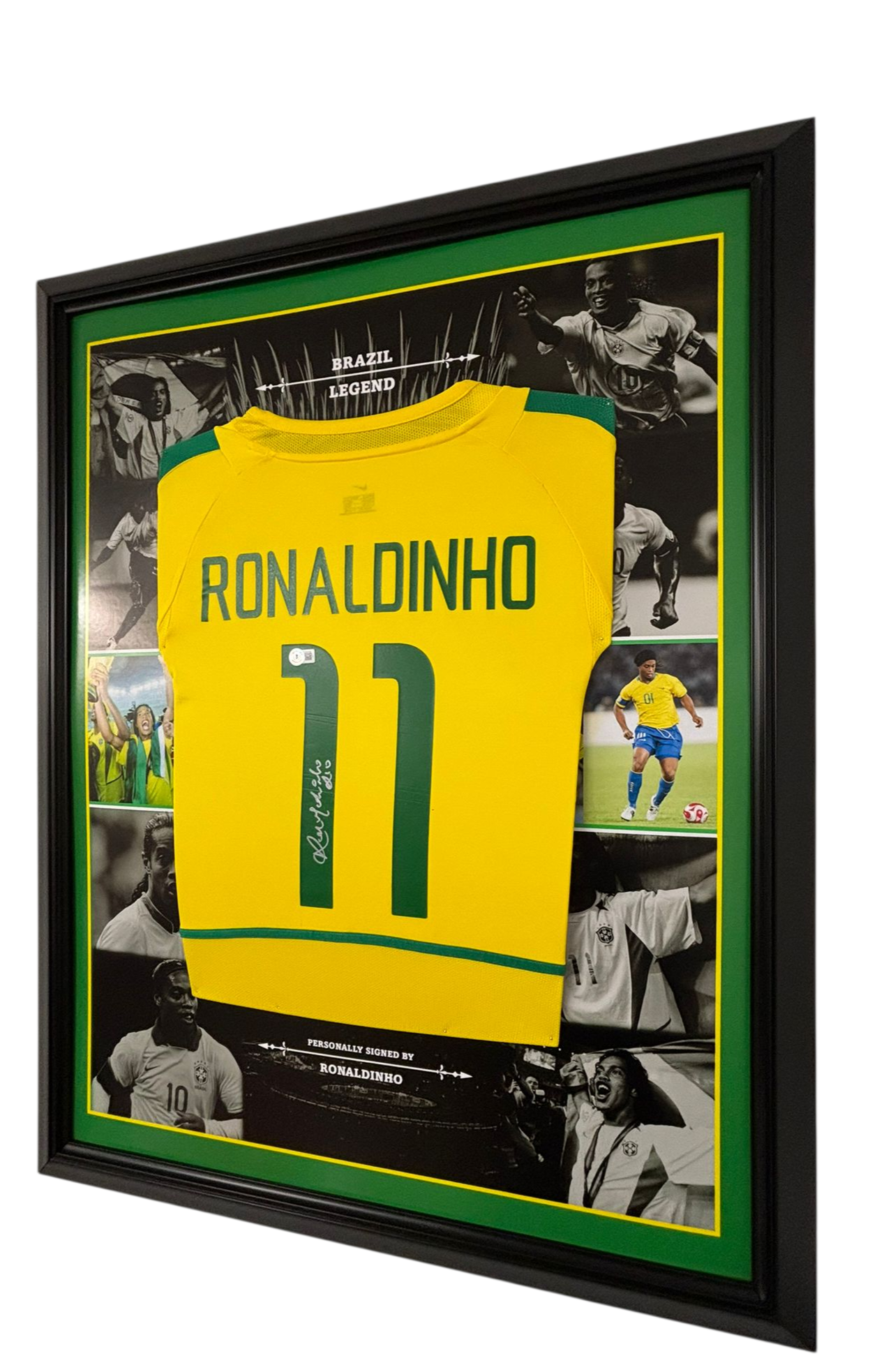 SIGNED AND FRAMED Ronaldinho of Brazil Autographed Jersey