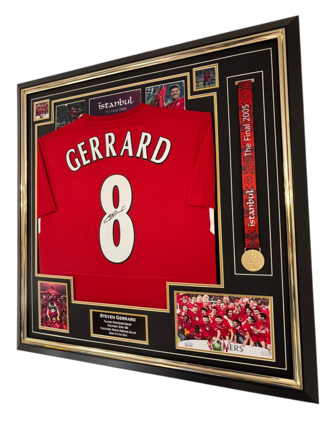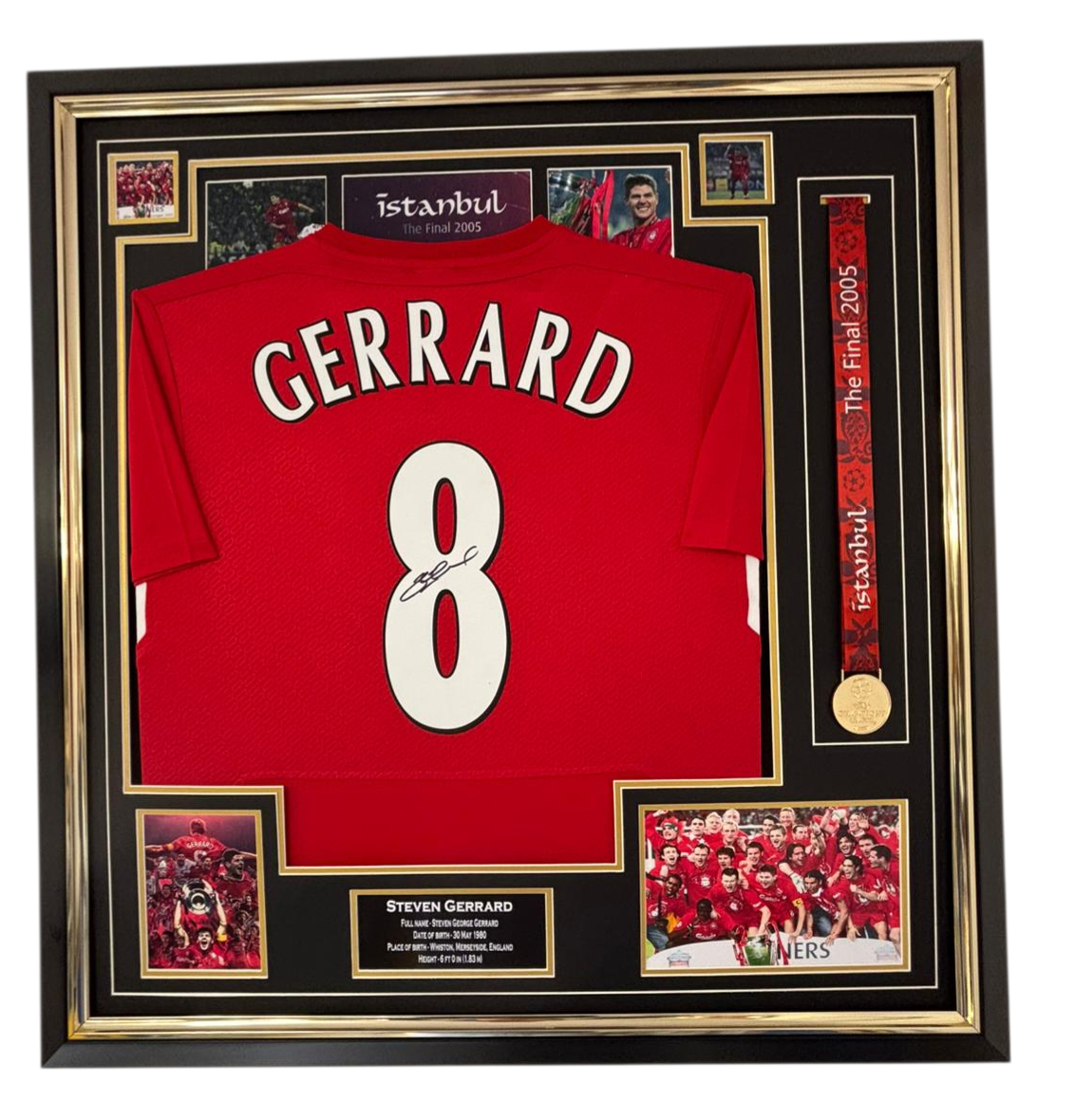 Steven Gerrard of Liverpool Signed and Framed Shirt With Medal